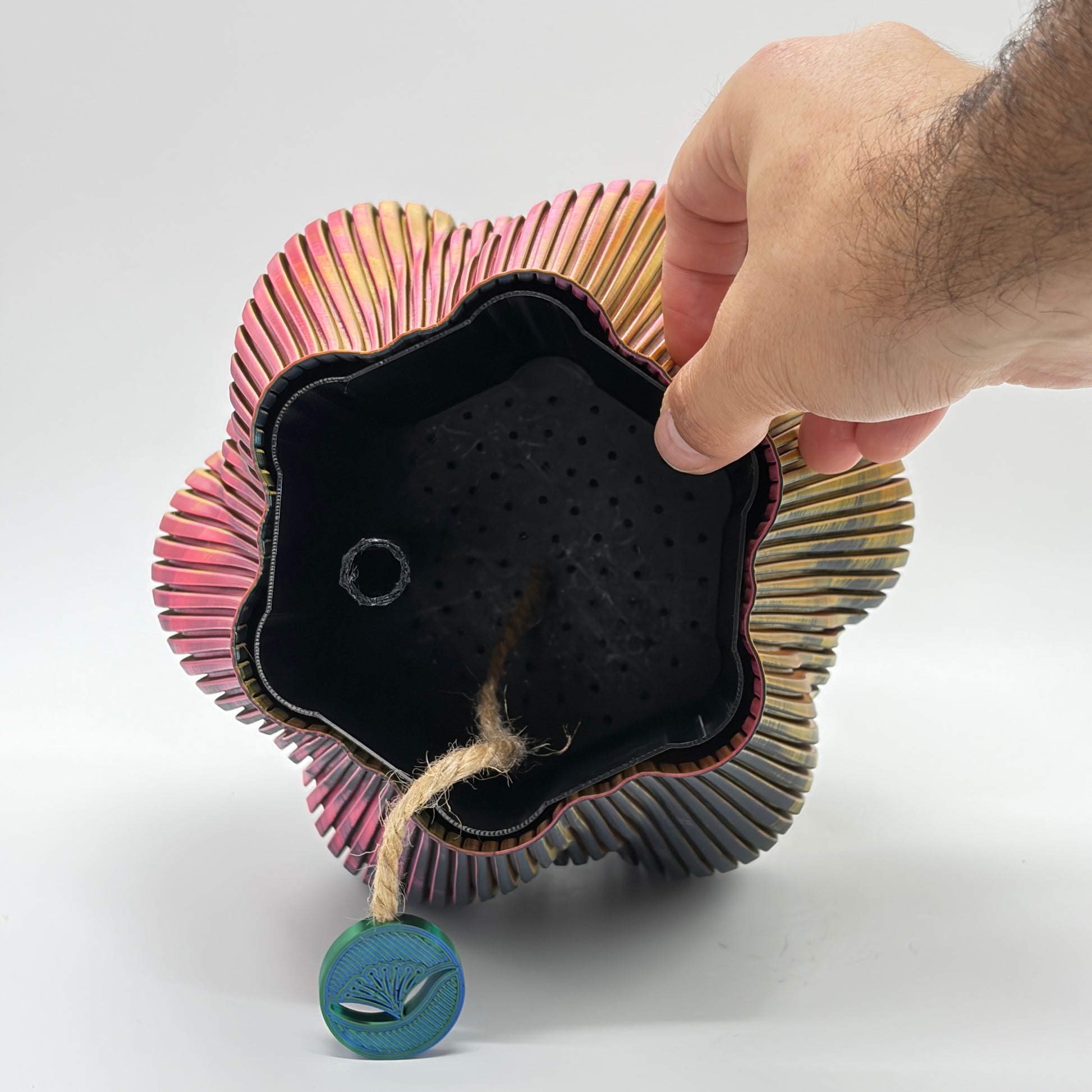 This is a 3D printed pot that brings colour and style to your house, they are resistant, light and easy to transport vases. Its vintage design combined with its construction method make this item unique and timeless.